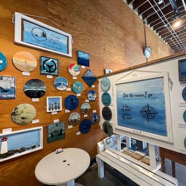 I use many different mediums, including but not limited to acrylics, vinyl with cricut, resin, sublimation with sawgrass, woodworking and graphic design. I also love to recreate vintage pieces such as antique windows to create custom works of art. I believe that working in a single medium is restrictive to my artistic process. Each idea manifests in its own individual style while blending beautifully and seamlessly together. It truly brings me joy to create one of a kind custom pieces for friends, family and customers alike. Check out our photo albums.