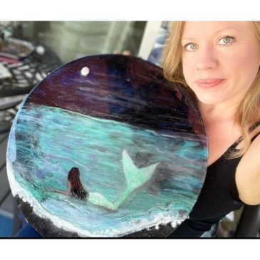I use many different mediums, including but not limited to acrylics, vinyl with cricut, resin, sublimation with sawgrass, woodworking and graphic design. I also love to recreate vintage pieces such as antique windows to create custom works of art. I believe that working in a single medium is restrictive to my artistic process. Each idea m